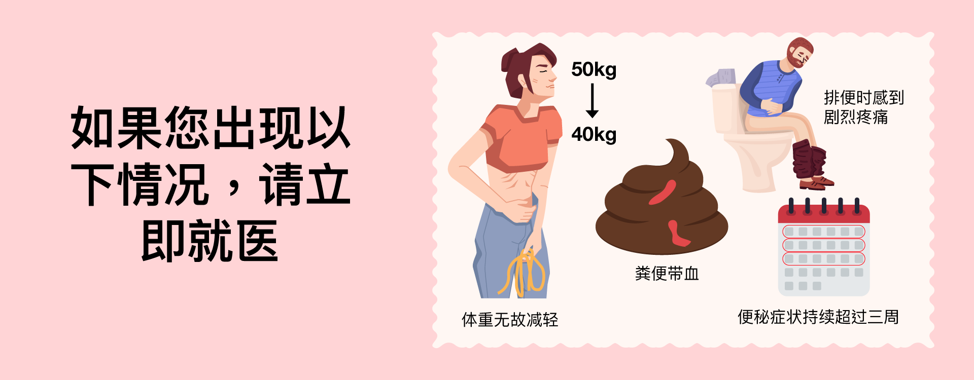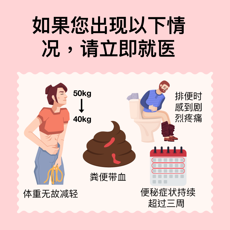 预防胜于治疗!在便秘成为严重的问题前,我们可通过正确的预防方法解决便秘。让我们通过自我监测来识别便秘的症状,其中包括: