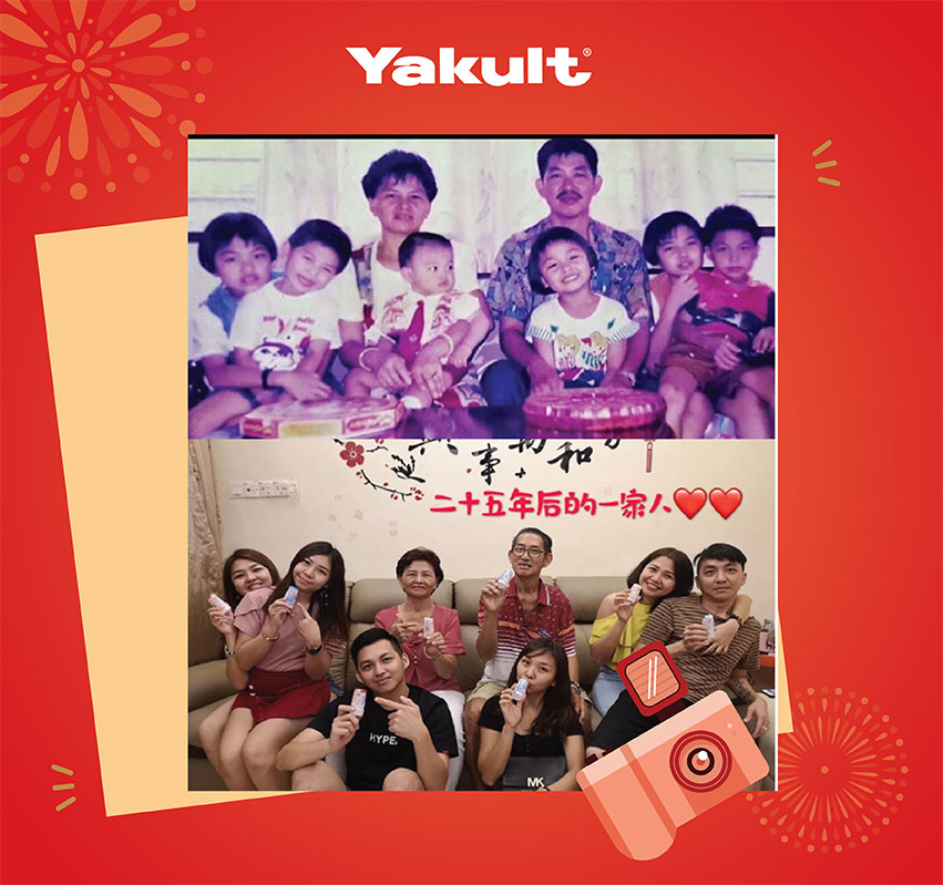 3. Take a family portrait with elements of Chinese New Year and Yakult.