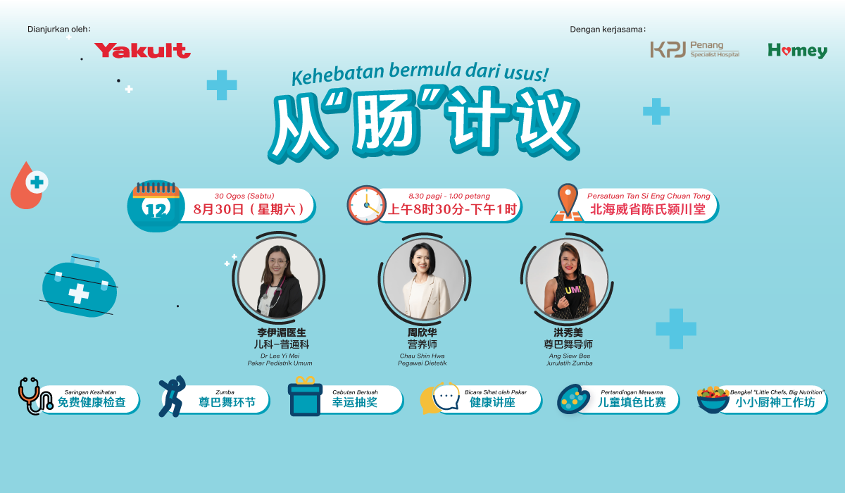“We are thrilled to collaborate with KPJ Penang Specialist Hospital and Homey Food to organize the ‘Greatness Begins from the Gut’ program The gut is more than just a digestive organ. It is also home to 80% of our immune system. This initiative plays a crucial role in empowering the community with digestive wellness knowledge and awareness,” said Ms. Mazlyn Mena Mustapha, Associate Director of the PR & Science Division at Yakult Malaysia.